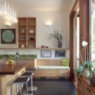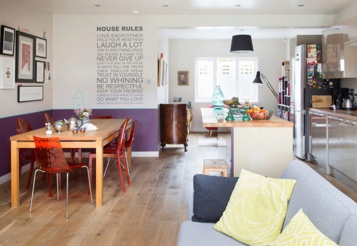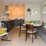 L'elecció d'una baga i la seva ubicació dependran directament de la mida de l'habitació. Si la cuina és àmplia, es pot dividir en zones, en una d’elles hi haurà un menjador i, en l’altra, l’anomenada àrea d’esbarjo. La part de treball pot acollir una estufa, nevera, armaris, una taula amb cadires, és a dir, tot el que necessiteu per cuinar i menjar.