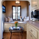 A una cuina petita, és molt difícil assignar espai, per exemple, a un sofà, però si ho penseu amb molta cura, podeu organitzar un lloc compacte que permeti a un hoste quedar-se a la nit o ajudar a un dels membres de la família durant una estona. En una zona petita, haureu de tenir molt en compte la col·locació de tots els objectes, calcular-la i mesurar-ho tot per tal de saber clarament què, on i com encaixaran.