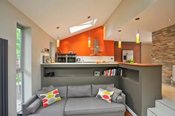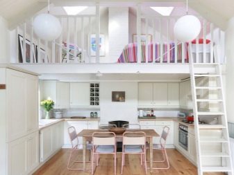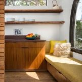 En una altra part, que es pot separar per un arc, un pilar, una pantalla, un prestatge, hi haurà un racó per dormir. Si a la cuina hi ha molt d’espai, podeu fer-la gran i còmoda, on podreu allotjar els hostes durant diversos dies, si ho desitgeu. És probable que es tracti d’un llit o mobles entapissats.