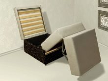 - Llit de cadira. Una opció convenient per a una cuina molt petita. Durant el dia, es tracta d’una cadira de saló ordinària on podeu seure a llegir un llibre o prendre una tassa de cafè. I a la nit, si cal, aquest moble es converteix fàcilment en un llit i, a continuació, es pot treure tan ràpidament.
