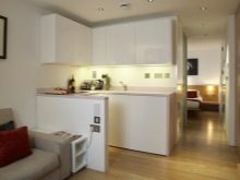 - Bressol. Si la cuina és massa petita i el llit és extremadament necessari, podeu recórrer a la forma més senzilla: utilitzeu un llit plegable. Aquest element sempre es pot plegar i col·locar al rebost o armari, ocupa molt poc espai quan es plega. Hi ha moltes opcions per dormir. Però cal tenir en compte els pros i els contres de cadascun. Si, per exemple, es necessita un racó per dormir, de cada cas, llavors un banquet, un sofà, una cadira-llit són molt adequats.