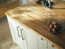 La mida més popular i buscada és de 3000x600 mm. És convenient per a qualsevol disseny de cuina. Una taula de treball de fusta requereix una certa cura: oli per envernissar o fregar regularment. Si no es fa, la fusta es deteriorarà ràpidament, perdrà les seves dades externes i les seves propietats pràctiques.