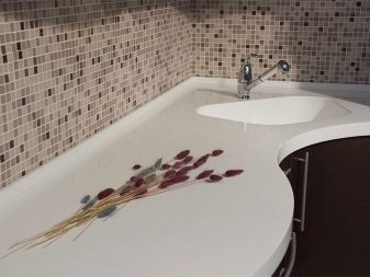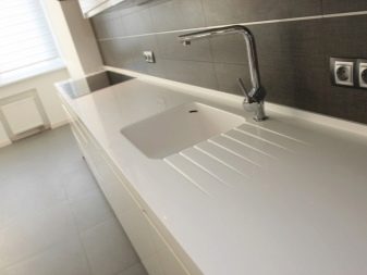 Les superfícies acríliques es consideren de pedra artificial. La seva composició és argila blanca, encenalls acrílics i polímers. Aquest material també és molt durador i té un aspecte excel·lent. Al tacte, aquest taulell semblarà més càlid que la pedra. Els estàndards de dimensió són els mateixos que per a la pedra, però el gruix és menor. De vegades només és de 12 mm. Degut a això, el consum de material és molt menor i, per tant, el cost serà menor. Aquest gruix no es reflecteix de cap manera en la durabilitat i la vida útil.