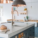 - No és menys important el disseny de taulells. Han d’estar en harmonia amb l’entorn de la cuina i amb l’ambient de la sala en general. En cas contrari, l’interior semblarà incomplet, desarmoniós.
