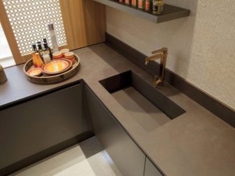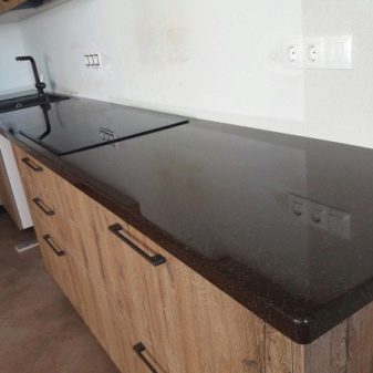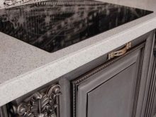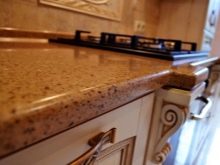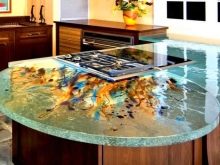 - Si seleccioneu taulells de pedra natural o artificial, cal tenir en compte que les seves superfícies es caracteritzen per una major duresa. Això s’ha de recordar quan es col·loquen plats als taulells.