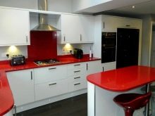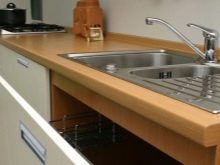 - S'ha de prestar la deguda atenció al material a partir del qual estan realitzats els taulells. Ha de ser impermeable i resistent a la humitat, perquè a la cuina sempre hi ha un nivell d’humitat elevat. Eviteu que el contacte dels taulells amb aigua no tingui èxit, fins i tot si ho intenteu.
