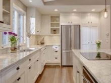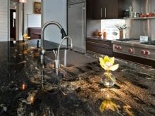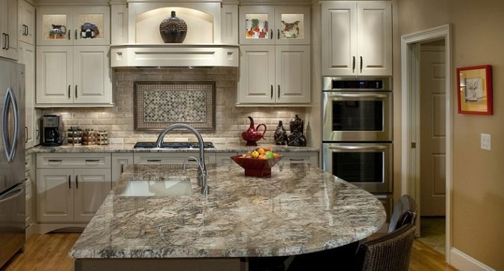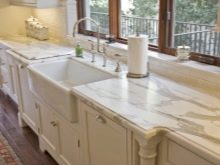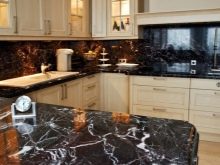 - Si voleu triar bonics taulells de pedra, heu de tenir en compte la quadratura de la cuina. En una habitació petita, aquests productes no es veuran. S'han d'utilitzar en cuines espaioses.