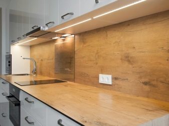 És important tenir en compte l’esquema de colors i el material del davantal. Per exemple, les solucions en què tant el taulell com el davantal de cuina estan fets dels mateixos materials semblen interessants i harmoniosos.