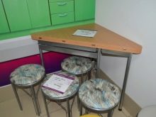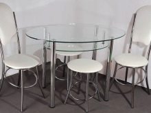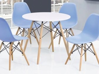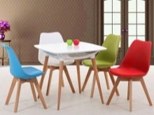Les cadires i taules en monocrom o blanc són adequades per a la majoria d’interiors. Per tenir clar matís tranquil, podeu agafar una taula blanca. Cadires: per combinar la taula o una mica més fosc / més clar.