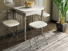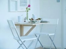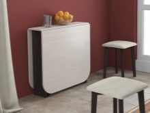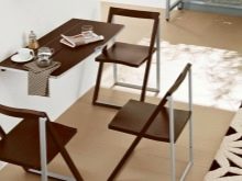 Potser el model més compacte es pot considerar una taula plegable contra la paret, organitzada pel principi de les taules dels trens. Quan no cal, la taula baixa la voluntat de la paret. Abans de l’àpat - puja i posa en la posició desitjada.
