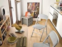 Una opció més popular són les cadires clàssiques amb l’esquena. Tenen un aspecte noble, convenient d’utilitzar. L’alçada del respatller pot ser de 36 a 81 cm. L’inconvenient de les cadires d’una cuina petita és que necessiten espai lliure, no es poden empènyer a sota de la taula. No obstant això, els fabricants moderns també solucionen aquest problema: les cadires plegables amb l’esquena van aparèixer a la venda. Si no hi ha espai a la cuina, es poden plegar i treure, per exemple, en un armari en una altra habitació, en una loggia.