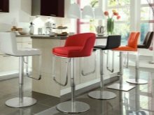 Si a la cuina hi ha un taulell de bar (o compleix una funció independent) aleshores, necessita excrements especials de barres. La seva característica distintiva és major alçada que els models clàssics. Les femtes de bar semblen elegants, són còmodes i pràctics. Es recomana triar models amb un respatller, i encara millor - semi-cadires de bar. Tenen una part posterior més alta, que garanteix un funcionament còmode.