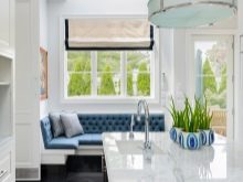 En lloc de cadires i tamboret, podeu triar un petit sofà de cuina. La mida estàndard és de 80 cm de llarg per 40 cm d'ample. Tot i això, són possibles variacions. Per un ús convenient, heu de triar models sense reposabraços. O amb un recolzabraç, si per aquest costat el sofà es desplaçarà contra la paret. Els models moderns disposen de calaixos interiors on guardar tèxtils de cuina, plats.