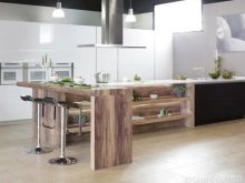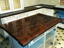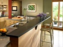 Els taulells de pedra es combinen amb suports metàl·lics o de fusta. Només s’utilitza pedra artificial, ja que no té un fons radioactiu, menys porós que el seu homòleg natural, té menys pes i cost.