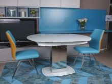 La taula extensible té un taulell de treball que pot augmentar de diàmetre. Això és possible a causa del fet que la taula es pot desviar, després de la qual cosa es presenten compartiments addicionals. Per regla general, la mida d’aquest últim és de 40 a 70 cm, la quantitat és d’1 a 4.