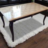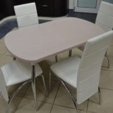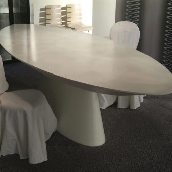 Els aficionats a l’interior pomcós art deco poden recomanar taules grans amb una superfície lacada en blanc o gris, però les potes del producte han de ser corbades i tallades.