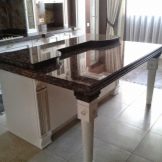 - Taules de granit No menys duradors i resistents a diversos tipus d’influències: tèrmiques o químiques. Podeu demanar una versió de granit de qualsevol forma: la pedra és fàcil de polir, té una estructura diferent.