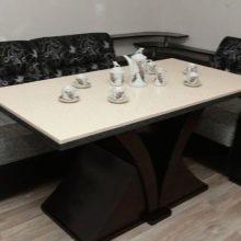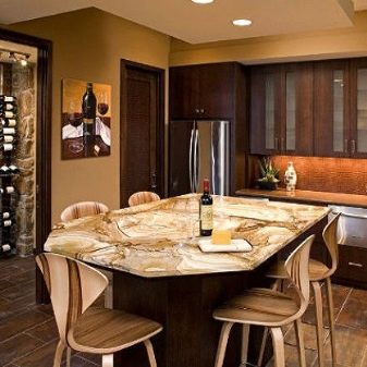 Una alternativa perfecta a les taules de pedra natural poden ser els mobles d’una opció artificial. Avui en dia, els fabricants de taules de cuina fabricades en pedra artificial han aconseguit productes de qualitat sorprenents: visualment, fins i tot, són difícils de distingir els uns dels altres. Per tant, abans de realitzar una compra, heu d’entendre bé quin dels materials artificials és la decoració més digna de la vostra cuina. Hi ha diverses opcions per triar mobles: