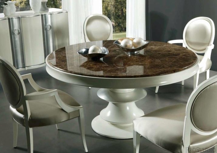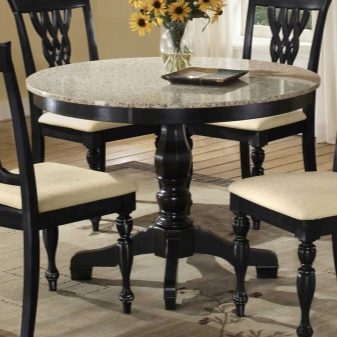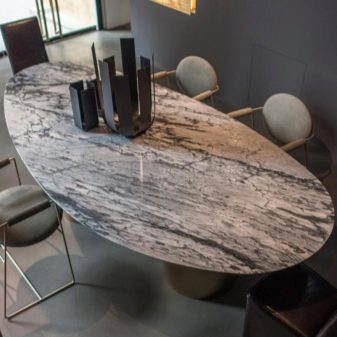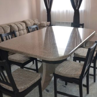 D’una àmplia gamma de taules fetes de pedra natural i artificial, podeu triar-ne una a gust: a la venda són quadrades, rodones o ovalades, rectangulars. Molts d’ells poden decorar qualsevol cuina, però, heu de triar la que s'adapta perfectament a la vostra habitació, sense embolicar-se i no "perdre'ns". Cal tenir en compte el nombre de persones que hi ha al seu voltant.