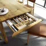 - taules de menjador amb calaix intern sense una gran caixa amb sistema d’emmagatzematge.