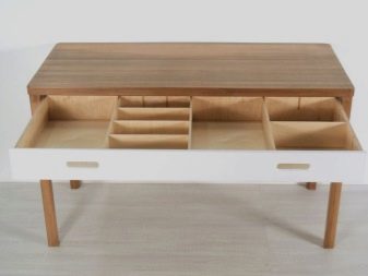 Dins d'aquestes taules, diferents sistemes d'emmagatzematge poden adaptar-se a un mecanisme de treball diferent (per exemple, retràctil, plegable, desplegable, corredor rotatiu). A més, a la venda a les grans ciutats podeu trobar models de tipus tàctil que s’obren i es tanquen des del tacte.