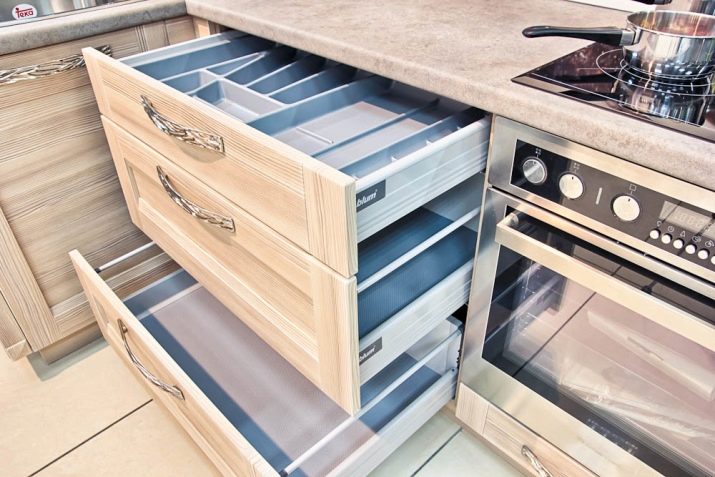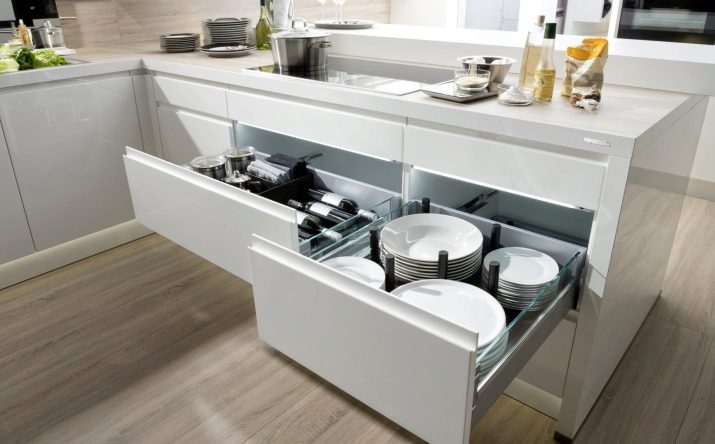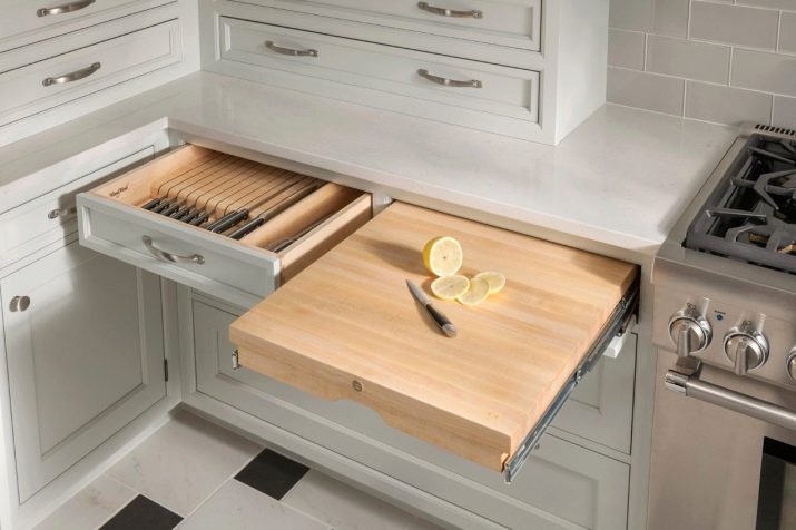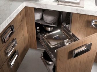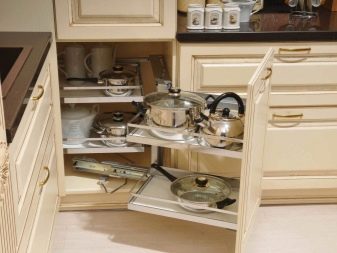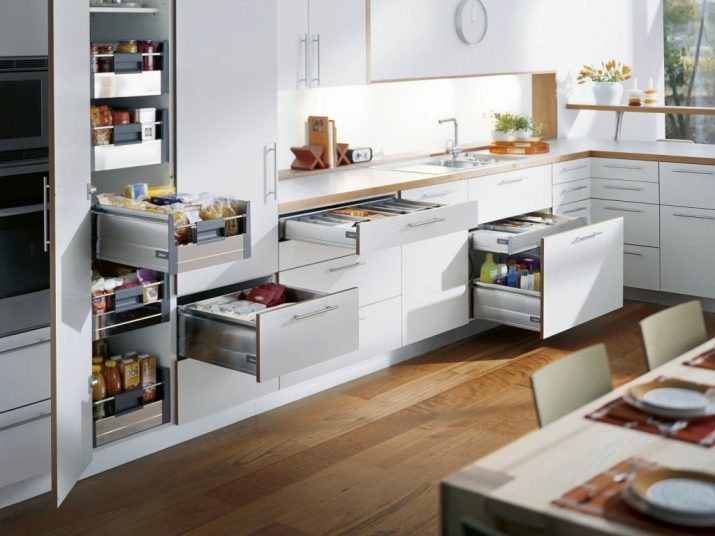 L’objectiu d’aquests productes és l’organització de l’espai, que permet desfer-se d’un gran nombre de petites coses inherents a qualsevol cuina. A causa d'això, tot el que necessita és a la mà de l'amfitriona, però al mateix temps, queda amagat a la vista. Junt amb els armaris articulats, constitueixen una base ideal per a la divisió racional dels locals en zones funcionals. Amb la seva ajuda, podeu distribuir correctament sistemes d’emmagatzematge per facilitar el treball de l’amfitriona a la cuina.