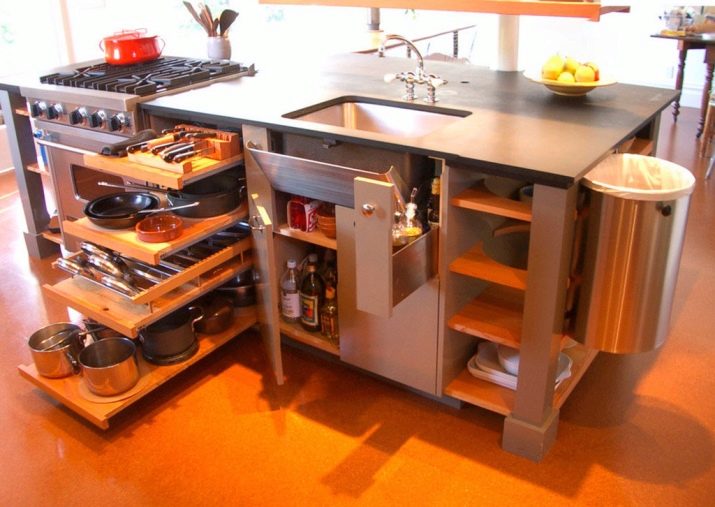 Les illes amb calaixos per a electrodomèstics de cuina poden ser compactes, plegables i mòbils.La seva alçada pot variar entre 90 i 125 cm, l’amplada sol ser superior a 1 m, la longitud pot arribar fins a un metre i mig. Quan compreu aquests models, assegureu-vos que tinguin accés des de tres cares. Quant a l’equipament i la profunditat de les caixes, aquests indicadors són estàndard o estan dissenyats per ordenar, subjectes a una decisió de disseny específica.