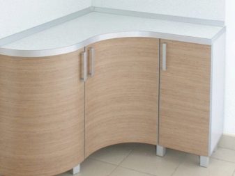 Les taules de taules es presenten generalment en forma de rectangle o quadrat. Tot i que els models de plegament vénen amb taulells semicirculars, en aquest cas, la taula de la forma desplegada tindrà la forma d’un oval. Aquesta opció és ideal per a cuines espaioses. Però si heu de comprar una taula per a una cuina petita, és millor parar atenció al model de cantonada, ja que no ocupa gaire espai, ja que s’instal·la a la cantonada lliure de l’habitació.