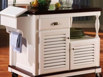 Molta gent tria una taula d’armaris per a la cuina segons els criteris de conveniència i compacitat d’aquest element. Igualment important és el compliment del disseny d’interiors. Normalment, la taula lateral té una unitat separada, que inclou calaixos i prestatges, a més de dues superfícies als laterals que es desplacen cap als laterals.
