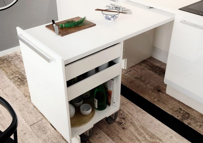 Cal destacar que hi ha models que no es despleguen. Estan destinats principalment a la cuina. Aquestes opcions solen incloure una petita taula de fusta amb una amplada inferior a un metre. En una taula així, tallen els aliments i cuinen, però no mengen. Passa que aquestes taules s’utilitzen per a arreglar una petita rentadora o al microones.