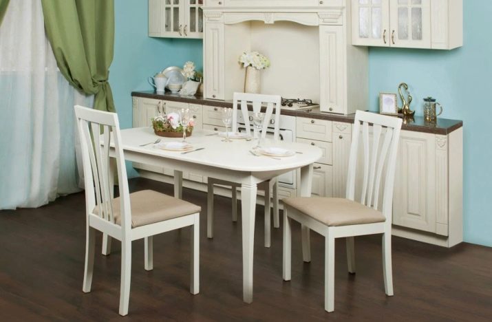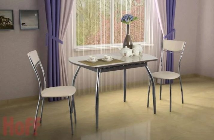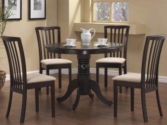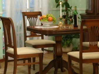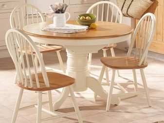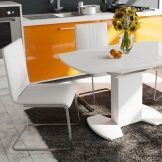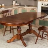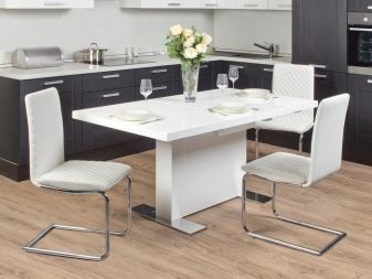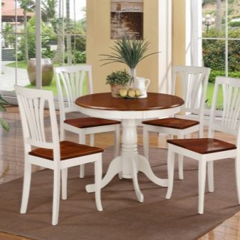Com que a la gran majoria de cuines la zona és relativament petita, no hi ha cap opció particular entre les opcions per col·locar mobles. La taula sol estar assignada a la paret oposada a la zona de treball. Només en relativament poques habitacions es posen taules al centre. No subestimeu tal característica com el nombre de potes.Si es pensa, els dissenys d’una sola pota són força estables i molt còmodes.