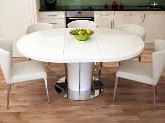 Les taules rodones semblen el més interessants i originals possibles. Aquests models s'han de triar en una casa on hi ha nens i animals de companyia, tots dos poden veure's molt danyats quan arriben a la cantonada. Tot i això, el producte arrodonit no es pot unir a prop de la paret o de la partició. Un òval actua com una espècie d’híbrid d’un cercle i d’un rectangle: aquesta forma té una aparença excel·lent i combina les millors qualitats d’altres dues configuracions. També podeu mirar les taules semicirculars.