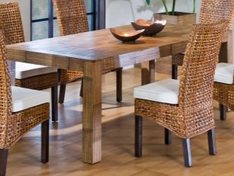 L’ombra i la textura dels taulells varien molt segons el tipus de fusta i fins i tot de l’edat de la fusta emprada en un cas concret. Els mobles de fusta s’adapten a l’ambient clàssic i fins i tot emfatitzat. De les opcions més exòtiques se sol recomanar. canya. La lleugeresa d’aquest material no impedeix que sigui força duradora i s’utilitzi durant molts anys. Normalment, les taules de canya estan cobertes de gots gruixuts. Aquesta solució us permet: