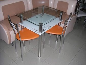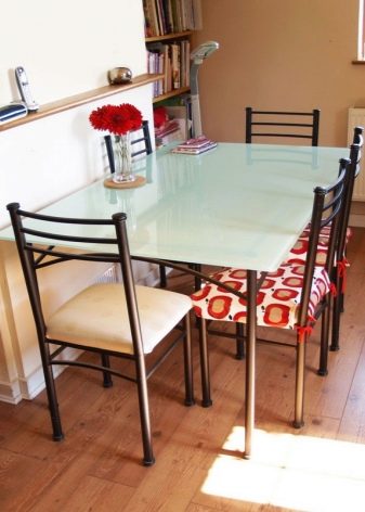 Molt sovint, les estructures de vidre estan equipades amb potes metàl·liques. Aquests models s'adapten perfectament a interiors minimalistes i mobles d'alta tecnologia. Encara podeu considerar aquestes opcions: