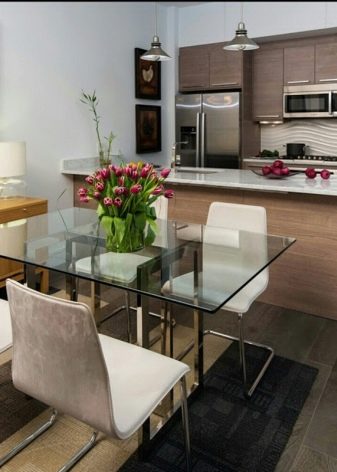 Un requisit obligatori per a una bona taula moderna és que coincideixi amb l’interior de la cuina. Per tant, cal triar-lo ja quan es determini la resta del conjunt. O, inicialment, feu un projecte clar, al qual us adheriu estrictament. Una elecció raonable en un interior modern seria taules amb taulells de barra. En qualsevol cas, primer heu de llegir les ressenyes.