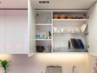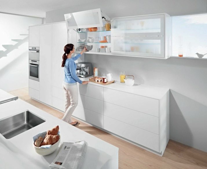 També és de gran importància que sovint es posin diversos electrodomèstics sota els armaris de paret. Si el pla inferior del mòdul està situat a prop de la superfície de treball, la seva aparença externa dels equips que funcionen és susceptible de patir (per no parlar d’un alt grau de perill d’incendi). El vapor d’una cuina lenta o una bullidora espatllarà el folre en poc temps.