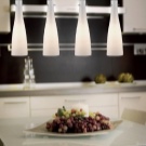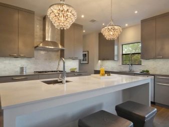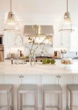 - Candelera - l’enllumenat més comú que s’utilitza per il·luminar no només la cuina, sinó també altres habitacions. Les canelobres tenen una forma diferent, la majoria de vegades es fan triples, amb un gran nombre de làmpades. Segons la mida i el disseny de la vostra cuina, heu de triar el candelabre adequat. Així doncs, per a una cuina amb sostre baix, és adequat un candelabre aplanat. Si la mida de la sala ho permet, podeu adquirir un candelabre més voluminós.