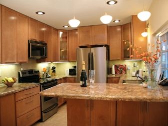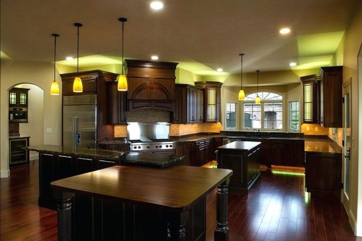 Si la cuina és petita, seleccioneu focus, panells d’il·luminació o espots per estalviar espai. Si la cuina és espaiosa, podeu triar qualsevol làmpada que us agradi.