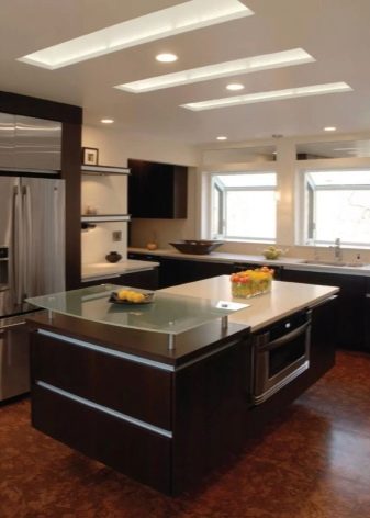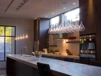 La cuina és on venim durant tot el dia a menjar. I per a l'amfitriona, aquesta habitació també és un lloc de treball. Per tant, és important que sigui còmode estar-hi. Una il·luminació adequada té un paper important en l’organització del lloc de treball.