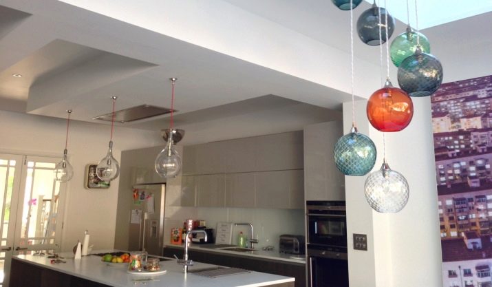 - Sobre la suspensió. Aquestes llums es fixen al bus o a la cadena. Val la pena assenyalar que aquestes làmpades ocupen més espai, però actuen com a accent interessant.