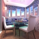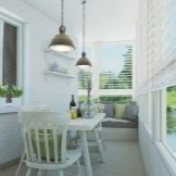 - Loggia-menjador. Aquesta opció és òptima per a habitacions no aïllades, si tots els esforços del propietari del local es van concentrar només en el vidre de l’espai i la seva decoració decorativa. En aquest cas, els mobles de menjador es treuen a la loggia: una taula amb cadires. Si es vol, com a taula, es pot utilitzar l’ampit de la finestra interior, decorat al voltant del perímetre. Les cadires altes aniran bé, el resultat és molt elegant i espectacular. Però aquesta és només una opció d’estiu.
