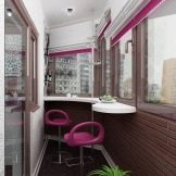 - Loggia Bar. Aquesta és una idea original per a les loggeries adjacents a la paret portadora, que és impossible d’enderrocar. En aquest cas, la base del marc de la finestra servirà per dissenyar la barra, i la part inferior es pot utilitzar com a lloc per guardar productes a granel i diversos articles domèstics.