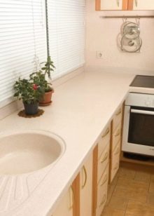 - Àrea de treball. Una opció similar només és possible quan la loggia estava completament aïllada. Normalment treuen una nevera, un lavabo i una estufa. Aquesta reurbanització requereix cablejat i subministrament d'aigua. Alguns artesans fins i tot col·loquen una rentadora, mentre que es col·loca en un elegant armari. Així, s’obté un taulell: això pot estalviar significativament l’espai útil.