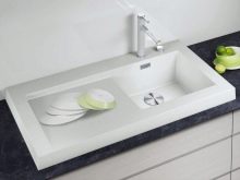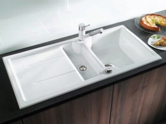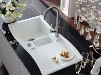 Els lavabos blancs per a la cuina es poden fer a partir de diversos materials.