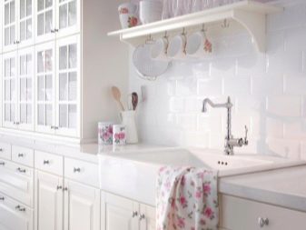 Una pica blanca de neu és capaç de posar accents elegants en una habitació dissenyada per cuinar, àpats familiars acollidors i un descans conjunt. Segons investigacions de psicòlegs, l’esquema de color blanc es calma, aporta pau i tranquil·litat a l’ambient de la cuina.