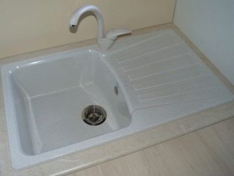 Els fabricants de pedra artificial van tenir en compte totes aquestes mancances: és més probable que aquest material compleixi els requisits per al rentat. Aquests dissenys són molt més forts i molt més resistents a qualsevol impacte. Tanmateix, si s’esforça molt, fins i tot es pot malmetre un model d’aquest tipus. Si decidiu comprovar la força del material amb un martell o un trineu - prepareu-vos per acomiadar la nova pica. A més, algunes mestresses de casa diuen que la pedra artificial sembla més barata i s’assembla més al plàstic que al material natural d’alta qualitat.