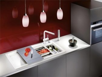 - Funcionalitat A les botigues al detall, cada cop podeu trobar no només un lavabo estàndard, sinó també models originals equipats amb diversos bols, un lloc per assecar plats, una safata petita, una picadora de residus i altres accessoris.