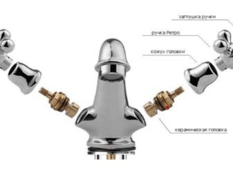 - Ceràmica. En aquest tipus de capçal de vàlvula es localitzen dues plaques ceràmiques. Tots dos tenen forats, i un d’ells és mòbil. Quan els forats s'alineen, l'aigua comença a sortir. La placa superior sol ser d'alumina.
