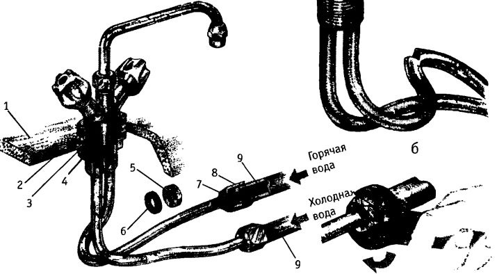 A continuació, utilitzant amb cura una clau clau ajustable, desmuntem el batedor antic. Instal·leu el nou disseny amb la funda roscada i apreteu-los amb una femella. Després d'això, fixeu el dispositiu a la canonada d'aigua i apliqueu un segellant o un compost especial de silicona.
