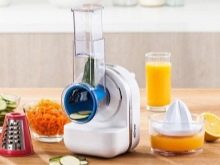 Si decidiu correctament amb quina freqüència i amb quina finalitat està previst utilitzar aquest dispositiu elèctric de cuina, aleshores amb la seva ajuda serà possible alliberar espai a la cuina d’equips innecessaris (per exemple, un espremedor no serà necessari), perquè un tallador vegetal modern pot substituir completament un potent i multi-funcional segadora